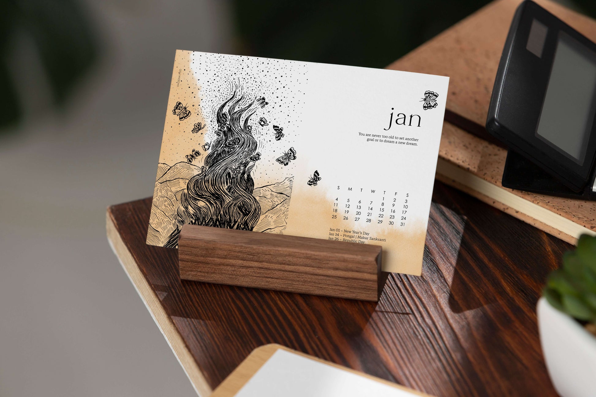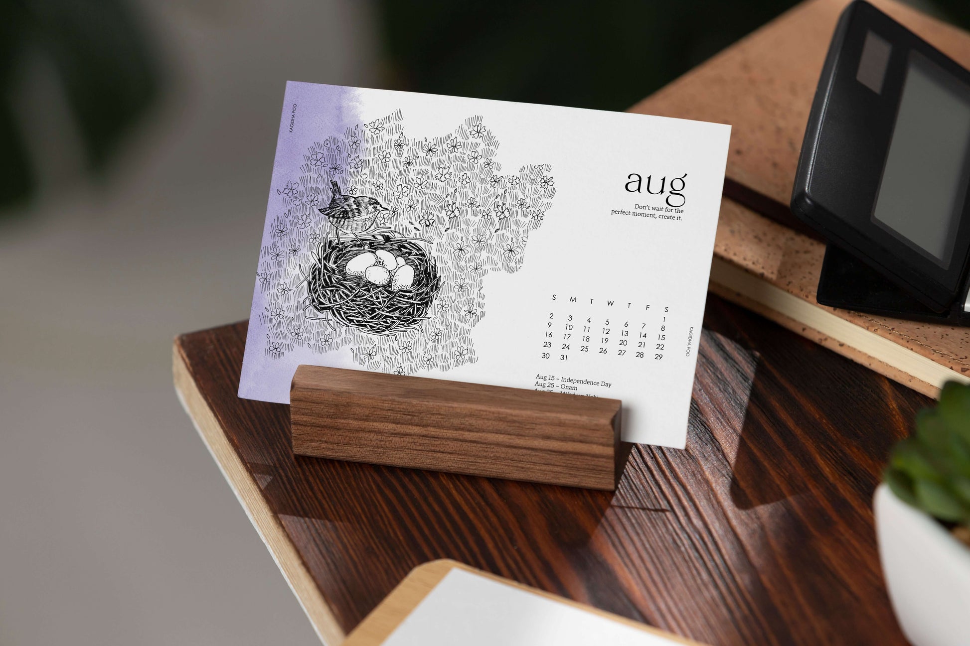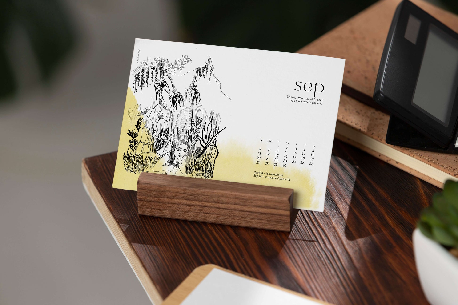 A curated desk calendar featuring 12 hand-illustrated Inktober prompts, each paired with a thoughtful monthly quote. Artful, mindful, and designed to inspire your everyday.
