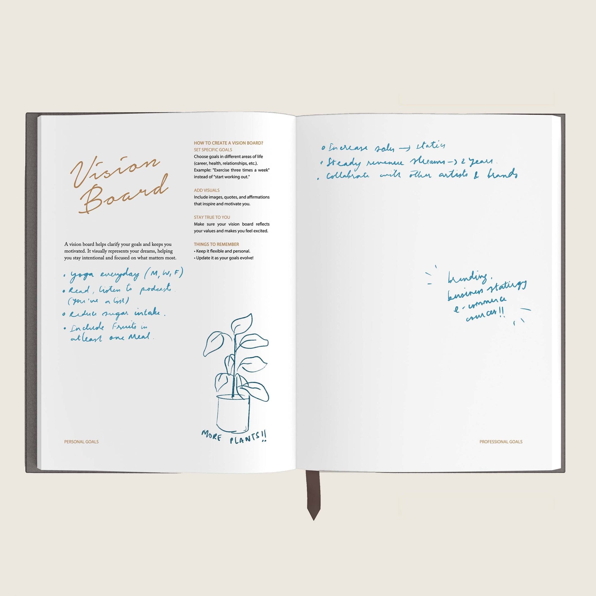 - Weekly and daily spreads for tasks, priorities, and notes.