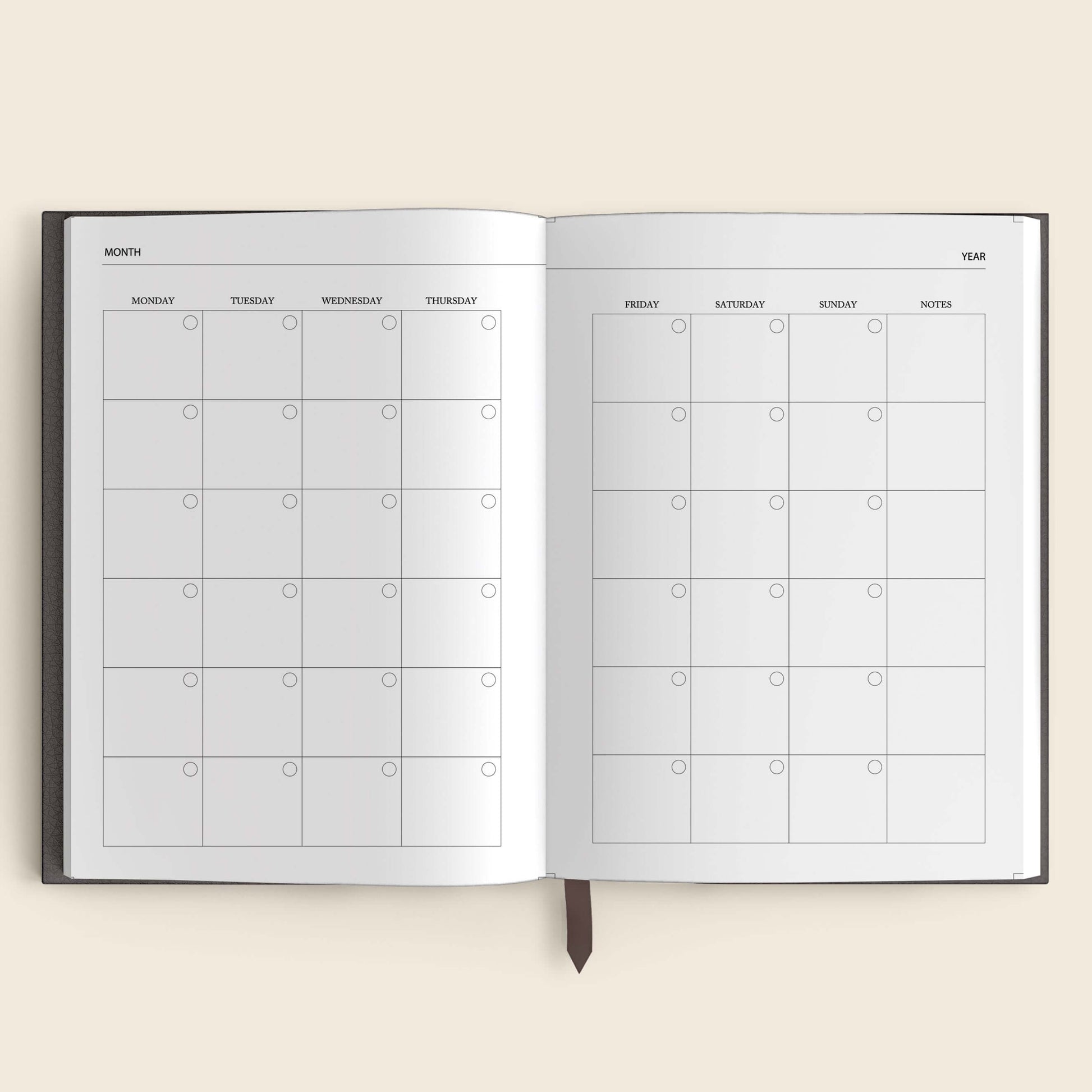 6-Month Spread: Perfect for half a year of planning, leaving room for flexibility. Monthly Overview: Start each month with a clear snapshot of goals, events, and priorities. Weekly Schedule: Plan your week with dedicated sections for tasks and reminders. Daily Spreads: Take it day by day with ample space for to-dos, notes, and reflections. Notes Pages: Stay organized with gridded note pages at the end of every week. Why You'll Love It Our undated planner is designed for your pace. Whether you're a daily planner or prefer taking it slow, simply add the dates as you go. This is planning made flexible—page by page, day by day.