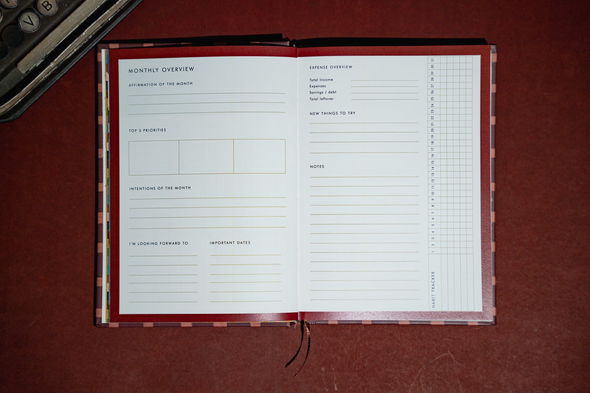 - Reflections: Monthly pages for lessons learned and plans for the month ahead